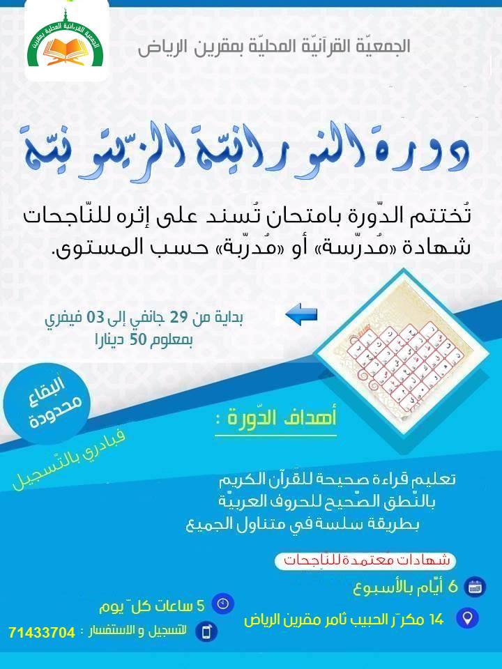 للرّاغبات في التّسجيل في الدّورة الاتصال على الرّقم التالي: 71433704