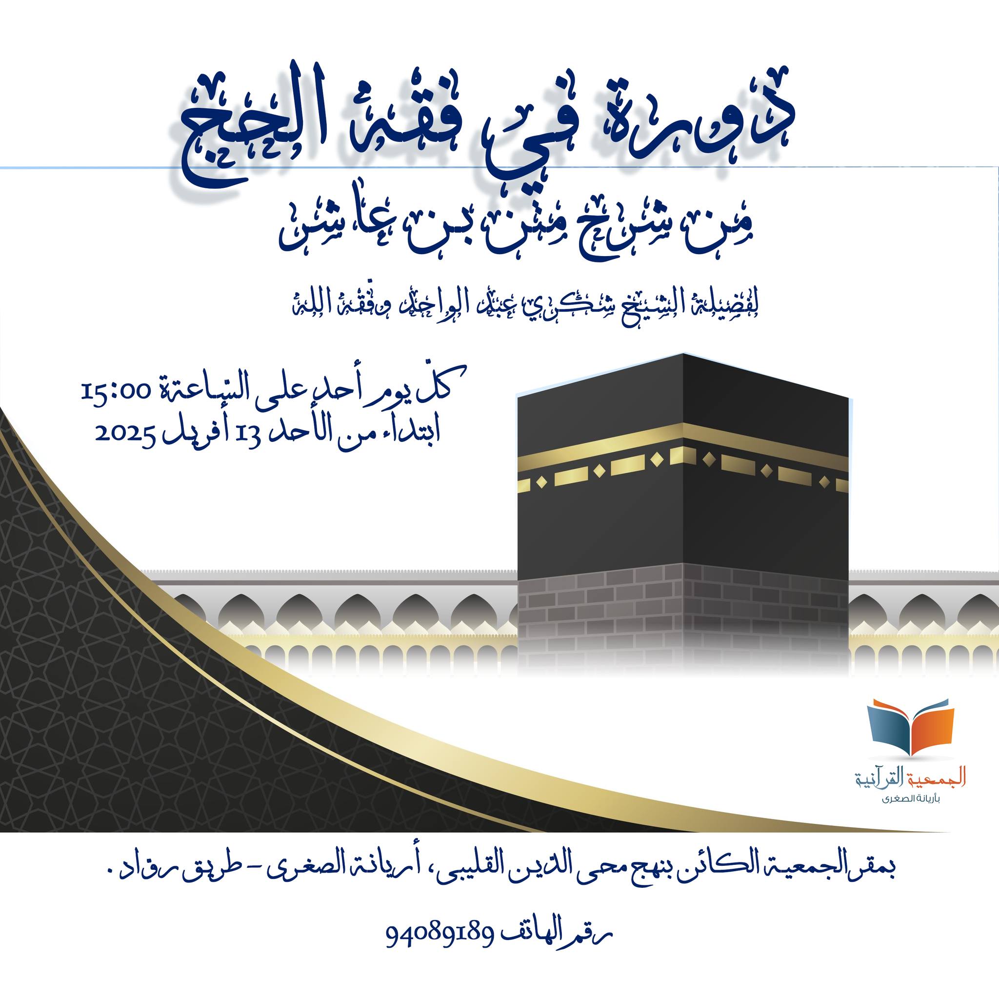 تنظم الجمعية الزيتونية للثقافة و العلوم بمساكن دورة تكوينية في أداء مناسك الحج و العمرة بمقر الفرع الزيتوني بمساكن : نهج حذيفة بن اليمان طريق القيروان بجانب جامع الصدق يومي 31 ماي و 01 جوان 2025 .
