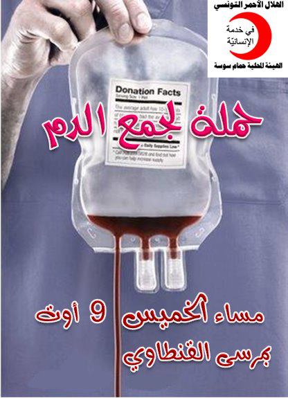 نظرا للنقص الفادح في مخزون الدم ببنك الدم في مثل هذه الفترة الحساسة من السنة، تنظم الهيئة المحلية للهلال الأحمر التونسي بحمام سوسة حملة للتبرع بالدم مساء الخميس 09 أوت 2012 بمرسى القنطاوي انطلاقا من الساعة التاسعة ليلا . شارك هذا الموضوع: النقر للمشاركة على X (فتح في نافذة جديدة) X انقر للمشاركة على فيسبوك (فتح في نافذة جديدة) فيس بوك معجب بهذه:إعجاب تحميل... تصفّح المقالات الجمعية التونسية للأعمال الخيرية نوران : خـتـان أطـفال مـن العـائـلات الـمعـوزةجمعية التسامح للقرآن والسنة بجرزونة